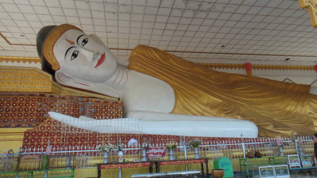 ပဲခူးမြို့၏အရှေ့တောင်ဘက်ယွန်းယွန်း ဖဲဖောင်တော်ကွင်းအရပ်တွင် အရှေ့သို့ မျက်နှာမူလျက် တောင်ဘက်သို့ ခေါင်းပြူကာ ဂန္ဓကုဋီတိုက်တော်တွင်း ကြည်ညိုသပ္ပါယ်စွာ စံပယ်လျက်ရှိပေသည်။