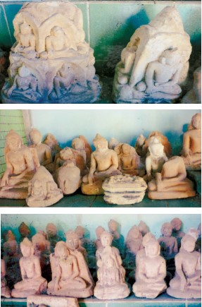 (၂၇-၂-၂၀၀၂)တွင် ရှေးဟောင်းသုတေသနမှ ဘုရားကြီးတည်ရန် ဖောင်ဒေးရှင်းတူးဖော်ရာတွင် မူလဘုရားကုန်းတော် ပလ္လင်ကုန်းမြေမှ တူးဖော်ရရှိပါသည်။ ၎င်းဘုရားများအား သုတေသနပြုချက်အရ ရှေးဘုရင်မင်းများ တည်ထားခဲ့သော သဲကျောက်များဖြင့် ထုလုပ်သွန်းလောင်းခဲ့ခြင်းဖြစ်ပြီး ၎င်းဘုရားများသည် နှစ်ပေါင်း ငါးရာကျော်သက်တမ်းရှိသည်ဟု ရှေးဟောင်းသုတေသနဌာနမှ သုတေသနပြုလုပ်ချက်အရ သိရှိရပါ သည်။ အစီအမံရုပ်တု ၁၄_၁၈ လက်မအရွယ် အစီအမံ လူကိုယ် နှင့် တိရစ္ဆာန်ခေါင်း ဘီလူးခေါင်းပုံများလည်း တွေ့ရပါသည်။