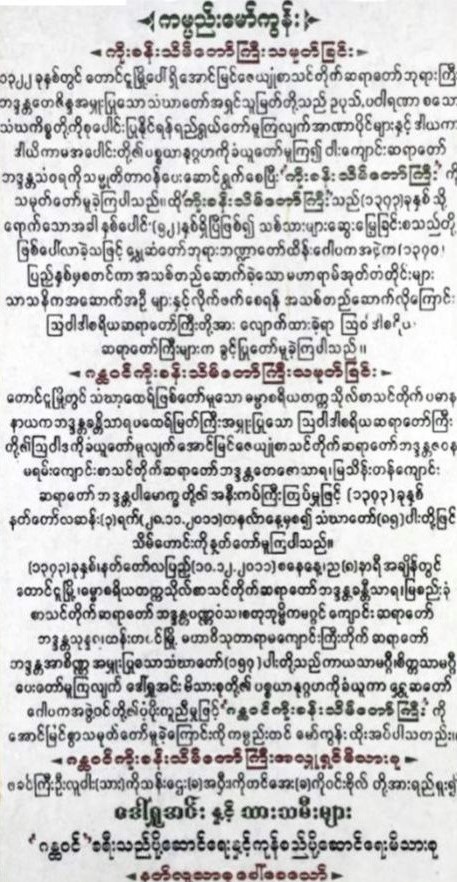 ဂန္ထဝင်ကို စန်းသိမ်တော်ကြီးသမုတ်ခြင်း -တောင်ငူမြို့တွင် သံဃာ့ထေရ်ဖြစ်တော်မူသော ဓမ္မာစရိယတက္ကသိုလ်စာသင်တိုက် ပဓာန ခန္တိသာရပထေရ်မြတ်ကြီးအမှူးပြုသော ဩဝါဒါစရိယဆရာတော်ကြီး တို့၏ဩဝါဒကိုခံယူတော်မူလျက် အောင်မြင်ဇေယျုံစာသင်တိုက်ဆရာတော်ဘဒ္ဒန္တဇဝန မရမ်းကျောင်းစာသင်တိုက်ဆရာတော်ဘဒ္ဒန္တတေဇောသာရ၊ မြသိန်းတန်ကျောင်း ဆရာတော် ဘဒ္ဒန္တပါမောက္ခ တို့၏ အနီးကပ်ကြီးကြပ်မှုဖြင့် (၁၃၇၃)ခုနှစ် နတ်တော်လဆန်း(၃)ရက်(၂၈.၁၁.၂၀၁၁)တနင်္လာနေ့မှစ၍ သံဃာတော်(၈၅)ပါးတို့ဖြင် သိမ်ဟောင်းကို နှုတ်တော်မူကြပါသည်။ (၁၃၇၃)ခုနှစ်၊နတ်တော်လပြည်(၁၀.၁၂.၂၀၁၁) စနေနေ့၊ည(၈)နာရီ အချိန်တွင် တောင်ငူမြို့ ဓမ္မာစရိယတက္ကသိုလ်အသင်တိုက်ဆရာတော်ဘဒ္ဒန္တခန္တီသာရ၊မြစည်းခုံ စာသင်တိုက်ဆရာတော် ဘဒ္ဒန္တပဏ္ဏဝံသ၊စတုဘုမ္မိကမဂ္ဂင် ကျောင်း ဆရာတော် ဘဒ္ဒန္တသုန္ဒ၈၊ထန်းတပင်မြို့ မဟာဝိသုတာရာမကျောင်းကြီးတိုက် ဆရာတော် ဘဒ္ဒန္တအာစိဏ္ဏ အမှူးပြုသောသံဃာတော်(၁၅၇ ) ပါးတို့သည် ကာယသာမဂ္ဂီ၊စိတ္တသာမဂ္ဂီ ပေးတော်မူကြလျက် ဒေါ်ရှုအင်း မိသားစုတို့၏ ပစ္စယာနုဂ္ဂဟကိုခံယူကာ ရွှေ ဆတော် ဂေါပကအဖွဲ့ဝင်တို့၏ပံ့ပိုးကူညီမှုဖြင့် ဂန္တဝင်ကိုးခန်းသိမ်တော်ကြီး ကိုအောင်မြင်စွာသမုတ်တော်မူခဲ့ကြောင်းကို ကမ္ပည်းတင် မော်ကွန်းထိုးအပ်ပါသတည်း။